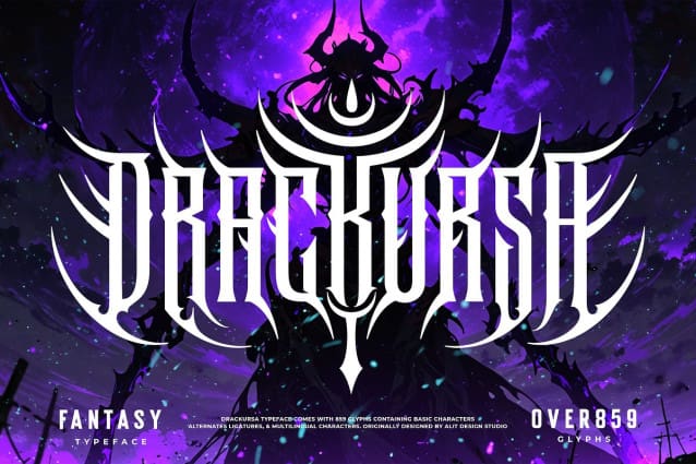 Drackursa is ideal for album covers, band logos, gig posters, or any creative work demanding a commanding, fearsome presence. Its modern yet arcane vibe makes it a must-have for projects steeped in darkness, rebellion, and anarchy.