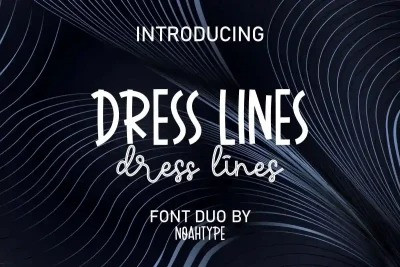 Dress Lines Script Font is a perfect blend of two different types of fonts designed by NoahType. This font has a funny sans display and a script with a special feature of stripes which makes it modern, unique and easy to read. It will be amazing for any project: billboard, brand logo, brochure, business card, headline, invitation, mockup design, product packaging, signage, and more.