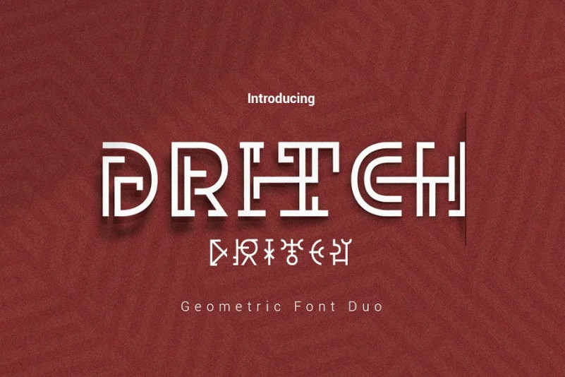 Dritch Font is a mystical font with a unique and modern geometric style. It is suitable for logos, quotes, social media posts, film titles and stationary. It works with different themes such as mystical, tribal, ethnic, magical, and fantasy. Enjoy! is a fresh, geometric, sans-serif font family. The geometric, near-monoline construction lends a classic durability, tempered by softened edges and vibrant shapes. Friendly and charismatic in lowercase; sophisticated and authoritative in uppercase. Hard lines and sharp corners mesh with smooth, rounded letterforms, while humanist nuances and warmth