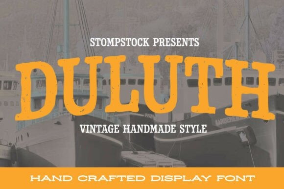 Duluth Font is a rugged, hand-crafted display font inspired by the harbor city on the shores of Lake Superior. Just like Duluth itself—a place where weathered ships meet rocky cliffs and old industry blends with creative grit—this typeface carries a bold, resilient character. Its rough edges and vintage charm feel both hardworking and artistic, making it ideal for designs that call for authenticity and strength.