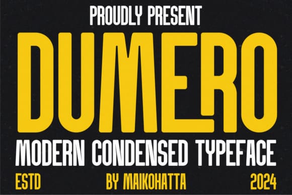 Dumero Font is a sleek and modern sans-serif font with a condensed design, perfect for projects that require a contemporary aesthetic. Its clean lines and balanced proportions make it ideal for headlines, logos, and signage. With its versatility and readability, Dumero adds a touch of sophistication to any design endeavor.