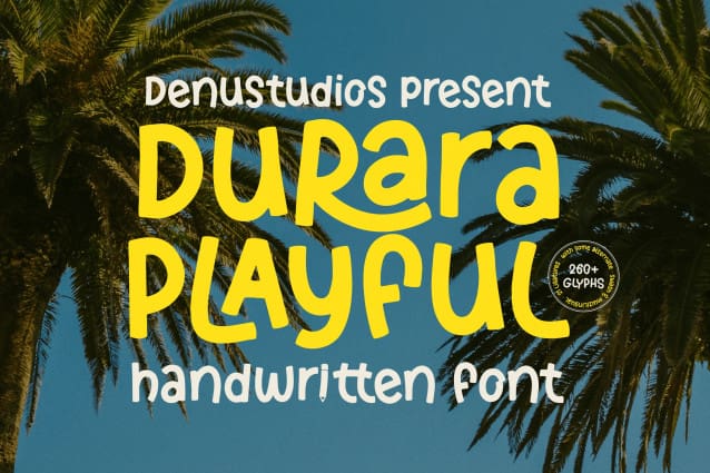 Durara Playful Font | Handwritten Font, from Denustudios, suitable for any projects such as: logos, branding projects, homeware designs, product packaging, mugs, quotes, posters, shopping bags, t-shirts, book covers, name card, invitation cards, greeting cards, label, photography, watermark, special events, and all your other lovely projects that need a Handwritten Font taste.