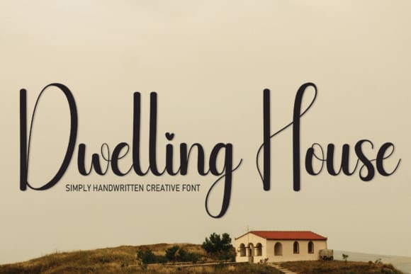 Dwelling House feels equally charming and elegant. It looks stunning on wedding invitations, thank you cards, quotes, greeting cards, logos, business cards, and every other design which needs a handwritten touch.