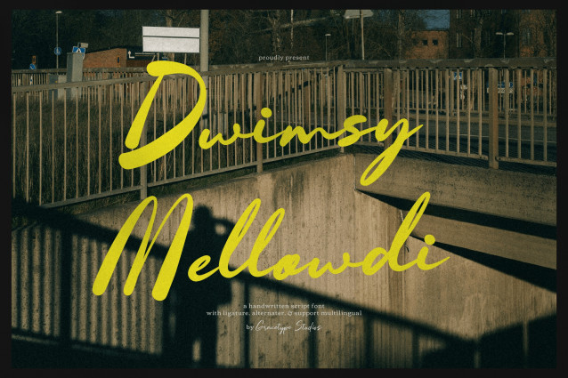 Dwimsy Mellowdi Script Font | Handwritten Script, from Gracetypestudio, suitable for any projects such as: logos, branding projects, homeware designs, product packaging, mugs, quotes, posters, shopping bags, t-shirts, book covers, name card, invitation cards, greeting cards, label, photography, watermark, special events, and all your other lovely projects that need a Script taste.