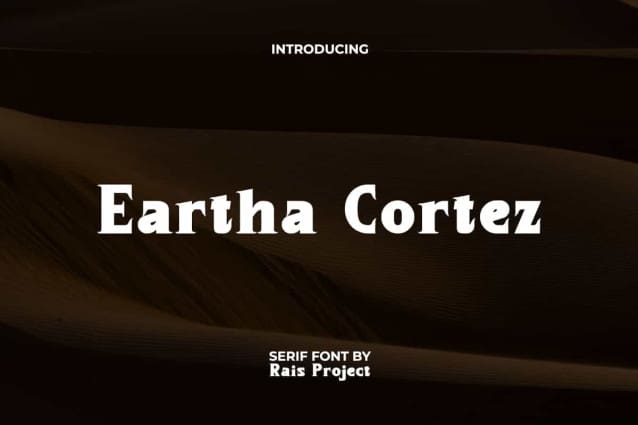 Eartha Cortez Font is a playful classic retro Serif font that stand out by RaisProject.This serif font has thick characters with sharp edges to making it stand out. It will look good on invitation, stationery, poster, custom design, product packaging, advertisement, label, marketing material, website page, and more!