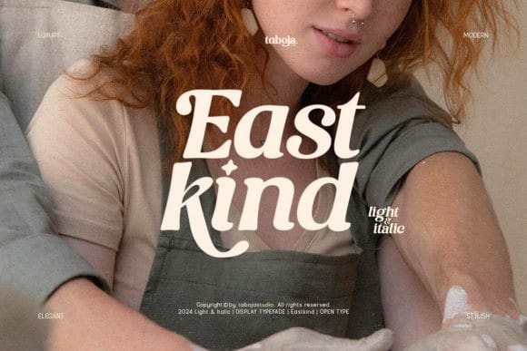 East Kind Font is a sophisticated serif font exuding timeless elegance. Its sleek lines and balanced proportions lend a touch of refinement to any project. Perfect for luxury branding, editorial designs, and elegant invitations, EastKind captures attention with its understated charm and classic appeal.