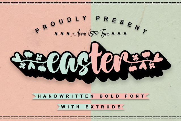 Easter Bold Font. I was born with a bold handwritten font but still has an elegant style and very neat kerning. This font is equipped with alternative font families from bold to outline, and extrude and is very easy to use. This font is very suitable for many projects, for example, it can be used for branding various product packaging, logotypes, wedding invitations, product packaging, headers, posters, merchandise, clothing branding, social media & greeting cards, and much more!