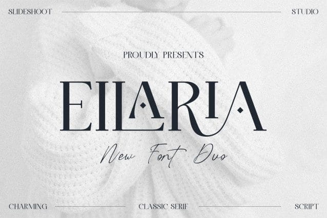 Eilaria Font is a classy duo font that includes modern serifs and scripts, which are perfect for using together in your designs. Can be used for titles, logos, brands, magazines, product packaging and invitations. Its elegant, stylish, classy, graceful and modern touch with clean lines and smooth curves gives an extra touch of class to any project. Making this font the perfect partner for any project.