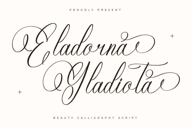 Eladorna Gladiota Font – Beauty Calligraphy Script , from Letterena, is a Luxury Script font, suitable for any projects such as: logos, branding projects, homeware designs, product packaging, mugs, quotes, posters, shopping bags, t-shirts, book covers, name card, invitation cards, greeting cards, label, photography, watermark, special events, and all your other luxury and beautiful projects that need a Luxury Script taste.