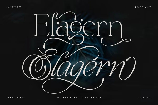 Elagern Font is a serif font with an elegant, modern design. It features multiple alternates and ligatures, making it a versatile choice for a wide range of applications. Its elegant serifs and classic proportions make it perfect for everything from body text to headlines, making it a perfect choice for any project.