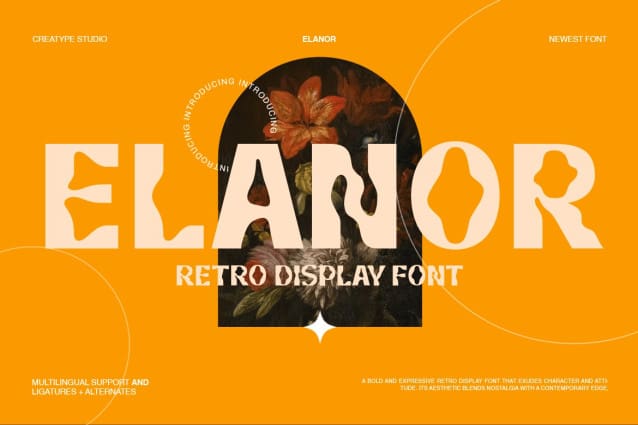 Elanor Font – Retro Display, a retro display font that exudes personality, creativity, and a nostalgic charm. Perfect for adding an expressive touch to your designs, Elanor Font brings a dynamic energy that’s both captivating and versatile.