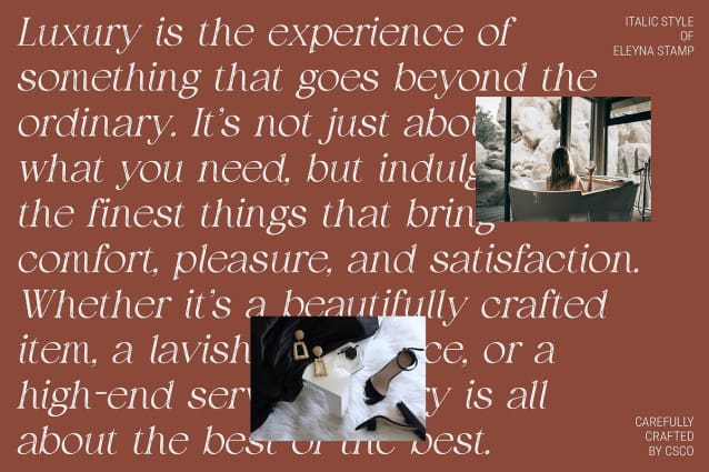 Perfect for Elegant and Impactful Designs Ideal for projects that require a balance of beauty and visual impact, Eleyna Stamp is perfect for high-end branding, stylish editorial layouts, and creative design applications. Its mix of refined elegance and edgy texture makes it versatile for a range of sophisticated and impactful designs.