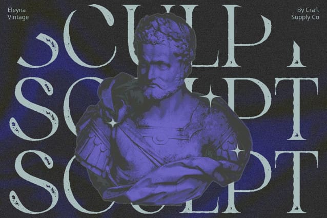 Timeless Elegance with a Vintage Twist This font combines a unique translational diagonal axis design with a rough stamp drawn effect to create a font that exudes vintage elegance. Its versatility makes it suitable for various design projects, while its vintage aesthetic adds a touch of timeless charm to any composition. Step into the past with Eleyna Vintage and infuse your designs with vintage sophistication.