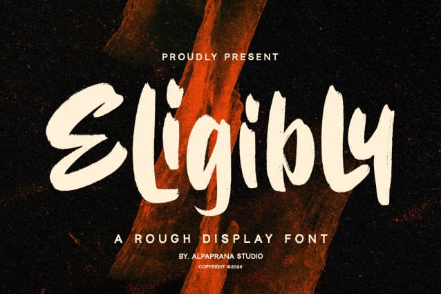 Eligibly Display Font is a display font with unique and modern feels. It will be perfectly used for Branding, Logo Design, Lettering, Logotype, Clothing, Poster, magazine, packaging, posters, shopping bags, t-shirts, book covers, photography, special events and other design project.