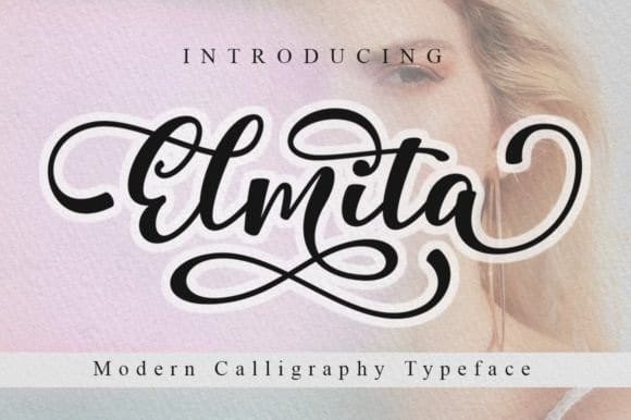 Elmita Font is a modern calligraphy font written in soft motion using an Artline brush pen, this font is perfect for logos, T-shirts, product packaging, greeting cards, brands, blogs, wedding invitations, all-inclusive charms, etc.