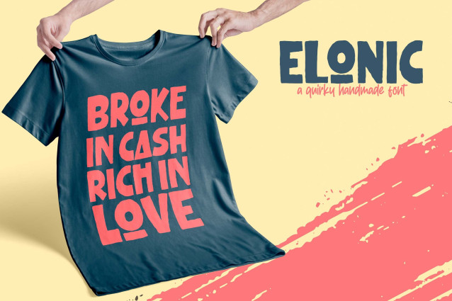 Elonic Display Font a Quirky Handmade Font is made for any professional project branding, such as logotype, watermarks, poster, branding, promotions, product packaging, etc. Every letter has a quirky style design.