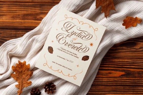 Each letter flows beautifully like falling leaves, with elegant alternates and swashes to make your words look charming. Whether you’re designing a Thanksgiving menu, a greeting card, or packaging for your homemade treats, Emasline Goldenstone brings that heartwarming, nostalgic vibe to your work.