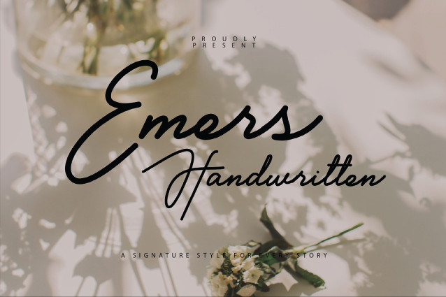 Emers Handwriting Font is a signature-style handwritten font designed to add a personal, stylish touch to any design. Its elegant and flowing strokes make it perfect for projects that require a sophisticated and authentic feel.