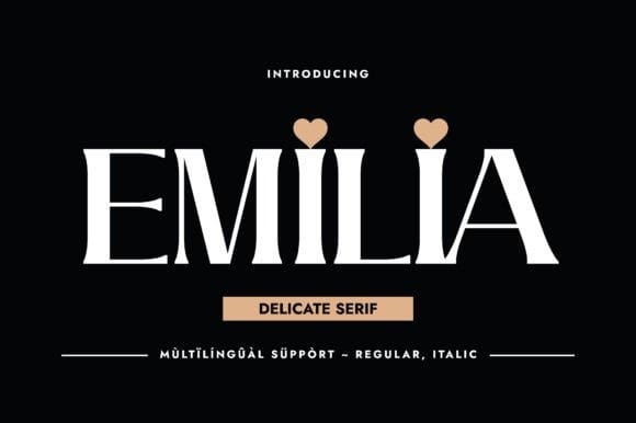 Emilia Typeface is a wonderful, delicate, and very well-studied serif typeface. The font was created thinking only one thing ”delicacy”. For that reason, the font holds an Italian female name ”Emilia”. The glyphs curves are smooth and the exterior is sharp, the thing that grabs the attention and makes it easily become an ”eye catchy” font. Use it in your favorite project and notice how much power it holds inside.