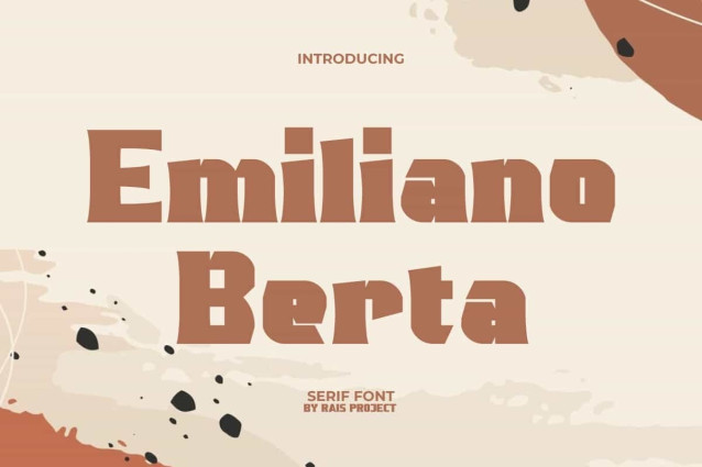 Emiliano Berta Font is a classic retro styled serif font with a unique boxy shape by RaisProject. This serif font has a catchy style and can paired with other font types. It will look good on invitation, stationery, poster, custom design, product packaging, quotes, signage, brand image, advertisement, label, marketing material, website page, and more!