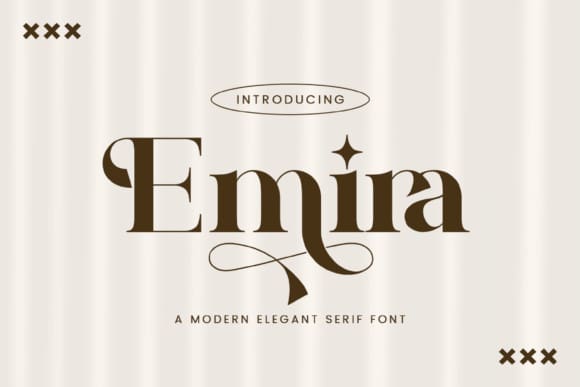 Emira Font – Stylish Ligature Typeface, inspired by the famous minimalist logo perfect for the purposes of designing templates, brochures, videos, advertising branding, logos and more.