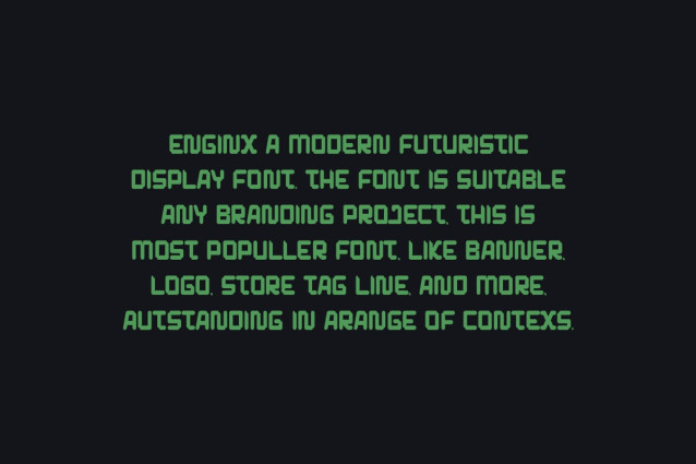 This font is used only for demos (Demo license). If you want to use this font for commercial use please contact: https://creativemarket.com/qrdesignteam/291693860-Enginx-Futuristic-Font?u=fontlot123