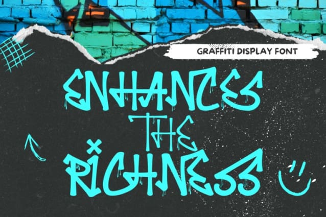 Enhances the Richness Font, inspired by the graffiti tags found in urban street art. Designed with dynamic freestyle flair, it brings the spirit of graffiti to your creative ideas. This style often used by several graffiti artist around the world because the style is very unique, very fun to write in markers. Perfect if you want realistic Street art style or hip hop for your designs, poster, props etc.
