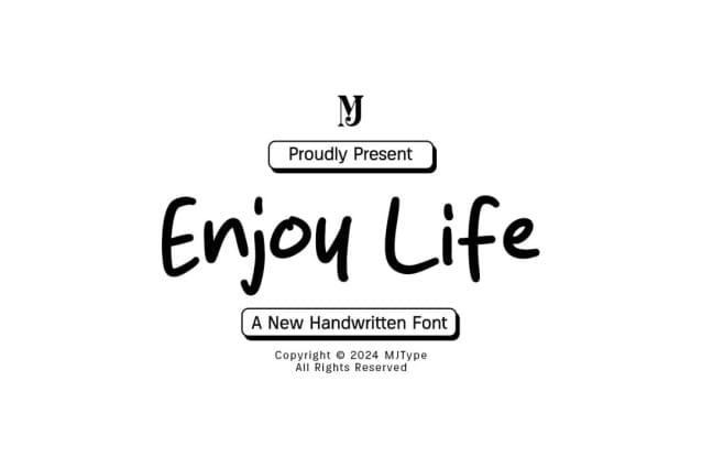 This font is used only for demos (Demo license). If you want to use this font for commercial use please contact: https://mjtype.com/product/enjoy-life/