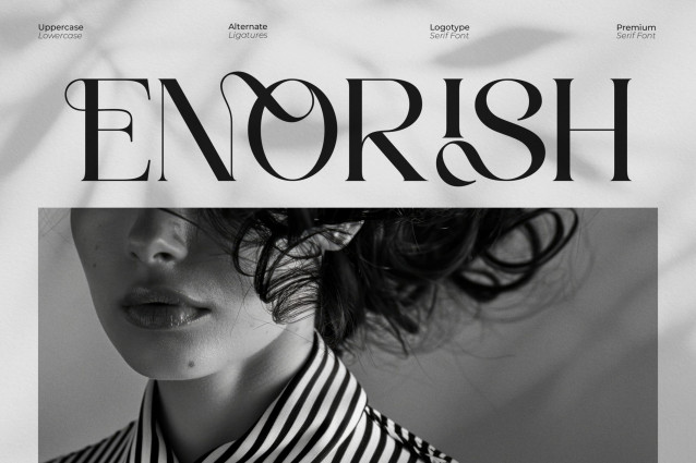 Enorish Serif is a modern and classy font type for all branding and logo designs. This modern and classy Serif font has a beautiful character. This font is suitable for invitation card designs, cool logos, movie titles, movie names, business cards, book titles, brand names, and various other designs. Enorish Serif is a smooth serif font that exudes sophistication and the moment. Its stylish ligatures make this font a perfect partner for any project.