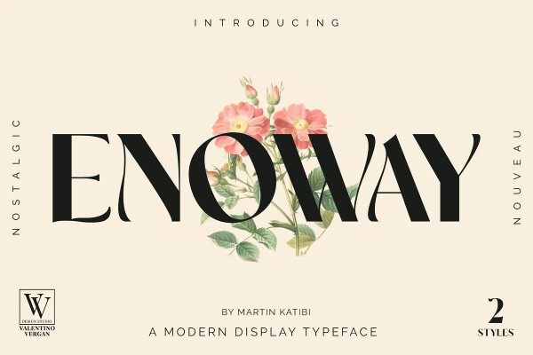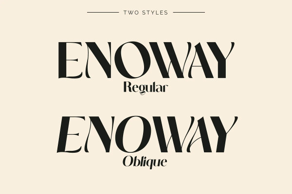 Enoway Font is a modern elegant typeface, which leans towards the Neue Nouveau style. It was inspired by the early the Art Nouveau typographic designs, which was characterized by decorative designs and embellished stroke endings. It has a high-contrast and a thin hairline, this gives the typeface a modern but nostalgic look. It comes in two styles, Regular and Oblique.