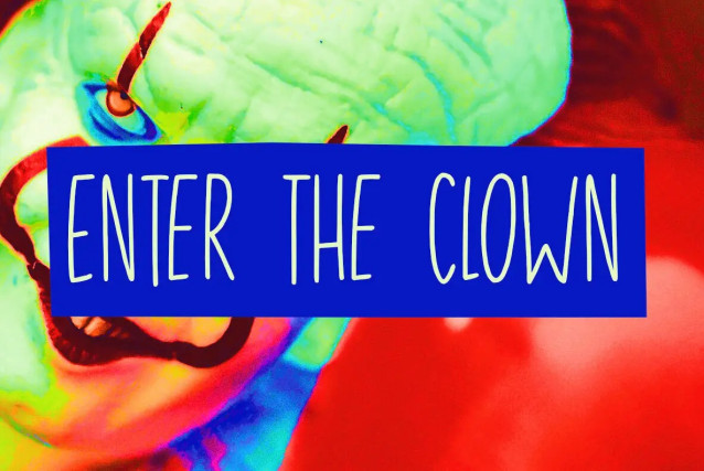 This font is used only for demos (Demo license). If you want to use this font for commercial use please contact: https://www.myfonts.com/collections/enter-the-clown-font-kitchen-table-type-foundry