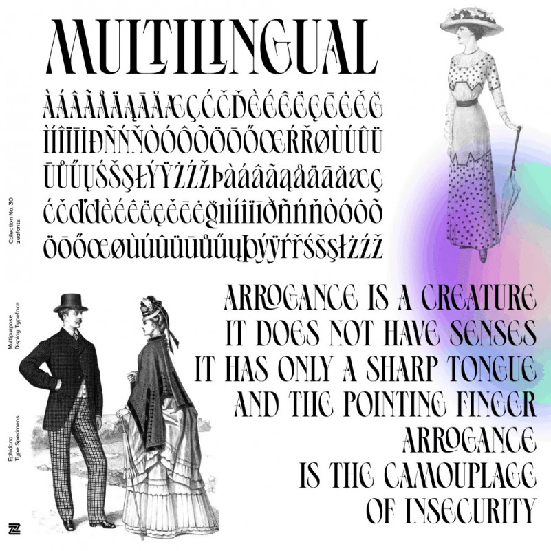 Grab our new font Ephidona Serif Font is a high contrast serif typeface that features a mixed modern-classic design. Supporting Latin languages, numbers, stylistic altnerates, punctuation, and alternative ligatures, you can create unique logotypes, element layouts, magazine titles, and much more.