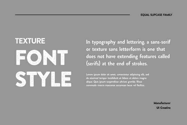 This font is made for personal use. Get the full version of the fonts if you want to use it for commercial purposes by purchasing the licenses here: https://creativemarket.com/uicreative/7535153-Equal-Slipcase-Sans-Serif-Font?u=fontlot123