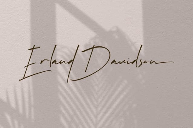 Erland Davidson Font is a sophisticated refined authentic thin handwritten signature font from by VinType Studio. This font has thin lines and is finely crafted to make the design look beautiful. This font will be suitable for many industries, such as advertising, beauty product, event or wedding organizer, design interior, fashion, handcraft, homeware, photography, spa and salon, and more!
