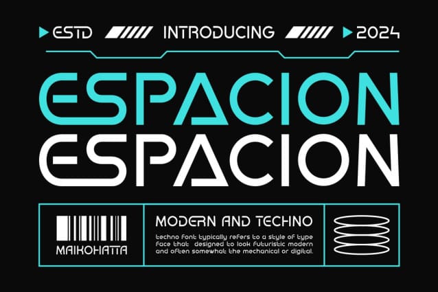 Espacion Techno Font is used only for demos (Demo license). If you want to use this font for commercial use please contact: https://creativemarket.com/MaikoHatta/280625841-Espacion-Modern-Techno-Font?u=fontlot123