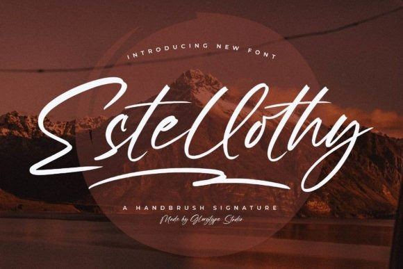 Estellothy Font – Handbrush Signature , from Glorytype Studio, suitable for any projects such as: logos, branding projects, homeware designs, product packaging, mugs, quotes, posters, shopping bags, t-shirts, book covers, name card, invitation cards, greeting cards, label, photography, watermark, special events, and all your other lovely projects that need a beautiful script taste.