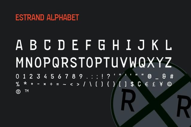 Estrand Font is a condensed sans-serif font meticulously crafted for durability and versatility. Ideal for industrial and outdoor applications, including road signage and traffic signage, this font boasts a robust letterform anatomy that ensures clarity even in challenging conditions.