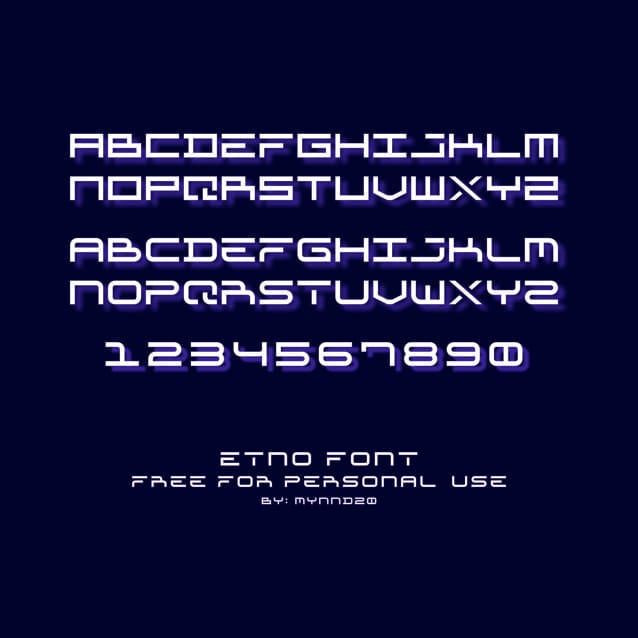 Etno Futuristic Font is a futuristic font inspired by the visual of technology that is found in sports logos, techno design, Sci-Fi movies, games, and gadgets. It is perfect for logos, labels, posters, packaging, books, movies, presentations, games, and much more!