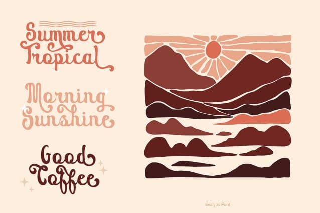 Evalyos Font is a retro script that creates a formal and elegant impression, helping text appear bold yet classy as they often use bold serifs for a classic look. This font fits perfectly in logos, contemporary posters, album, wedding invitation, fashion, branding and lifestyle driven branding. Whether you’re creating digital content or printed materials.