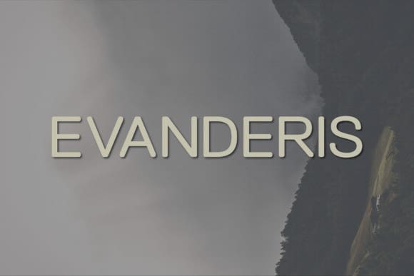 Evanderis Font, a modern, classy sans serif typeface. A sans serif typeface that contains upper characters, number 0-9 and a range of punctuation and symbols. An extremely versatile font, perfect for logos, weddings, invitations, quotes, advertisements, print, magazines, and more!