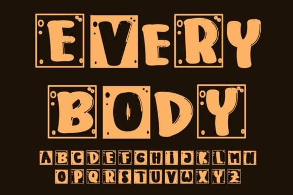 Every Body Font is a fun and playful display font. Whether you use it for cartoon-related designs, children’s games, or just any creation that requires a lovely touch, this font will be an amazing choice.