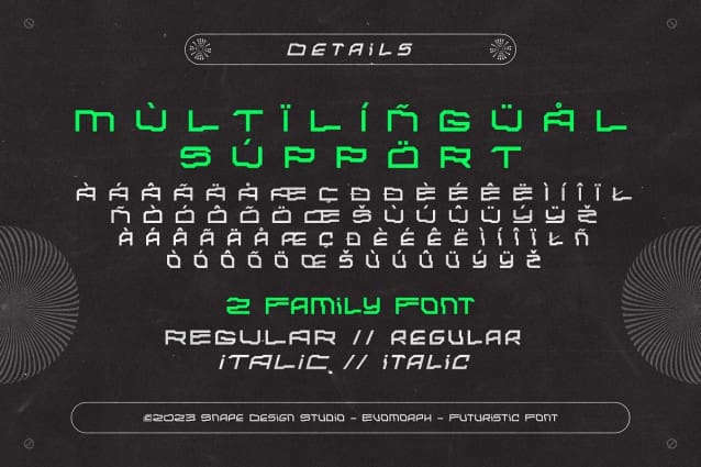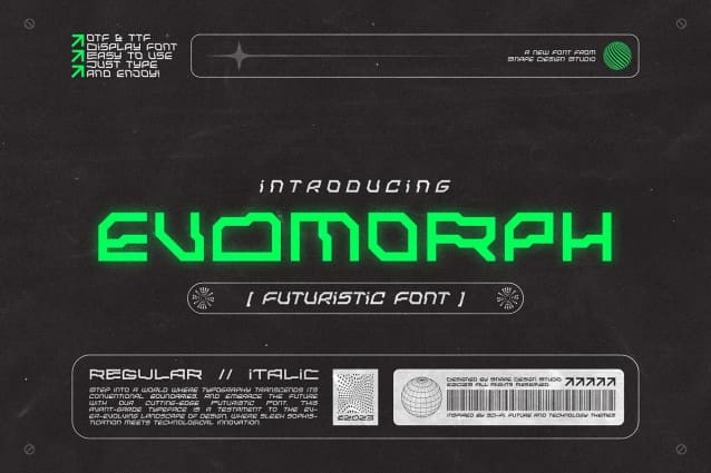 Evomorph Futuristic Font – where innovation meets aesthetics in the realm of typography. This cutting-edge collection of fonts redefines the future of design, offering sleek, dynamic, and visually striking characters that seamlessly blend technology and artistry. Perfect for sci-fi themes, tech branding, or any project that demands a modern edge, these fonts empower creativity with their versatility and user-friendly customization options. Elevate your designs to the next level and embrace the future of typography with our Futuristic Font product.