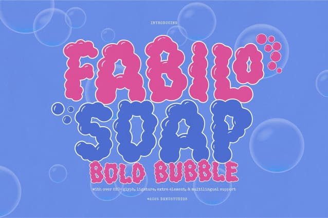 Fabilo Soap | Bold Bubble Font, from Denustudios, suitable for any projects such as: logos, branding projects, homeware designs, product packaging, mugs, quotes, posters, shopping bags, t-shirts, book covers, name card, invitation cards, greeting cards, label, photography, watermark, special events, and all your other lovely projects that need a Bold Bubble Font taste.