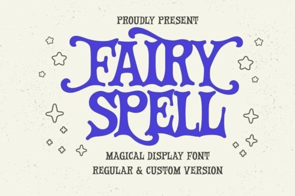 Fairy Spell Display Font is a magical display font with soft curves, playful serifs, and whimsical letter shapes inspired by storybook fantasy. The characters feel bold yet friendly, with decorative details that add charm without losing readability. It works beautifully for titles, posters, book covers, packaging text, kids visuals, quotes, invitations, and creative branding that needs a touch of magic and fun.