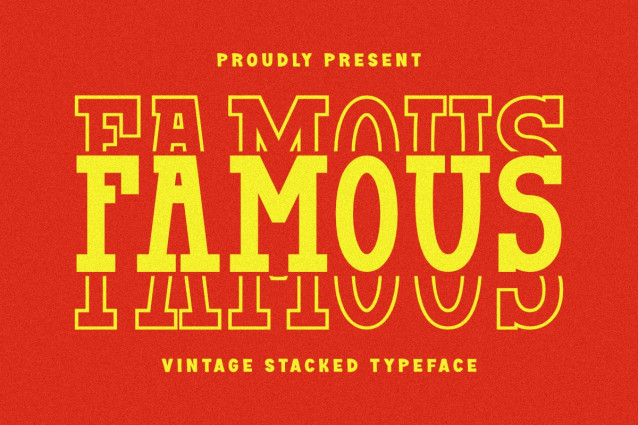 Famous Stacked Font a dynamic Vintage Stacked Typeface designed for maximum impact. This layered display font includes multiple styles to easily create authentic, colorful, retro effects. Perfect for Apparel Merch, Poster Headlines, and Bold Nostalgic Branding