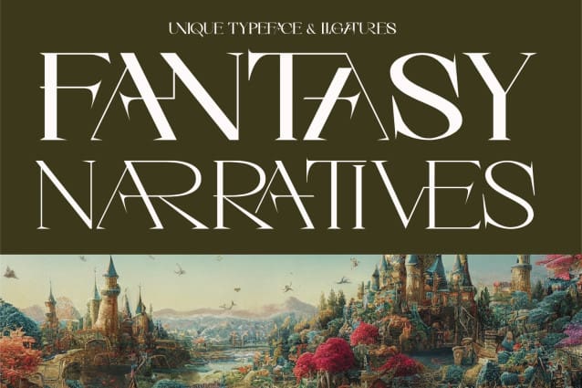 Fantasy Narratives was built with OpenType features and includes 100 ligatures, alternate, numbers, punctuation, and it also supports other languages.