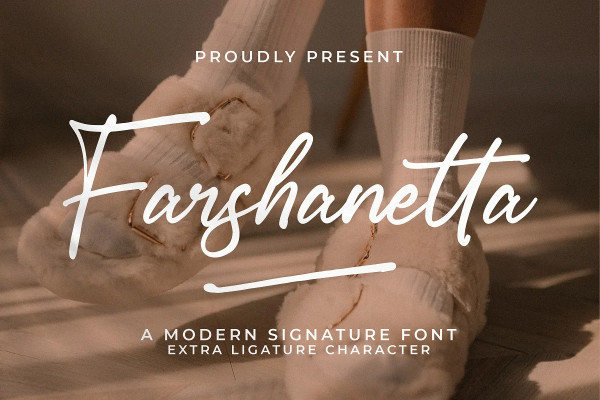 Farshanetta Script Font – Modern Signature Font, from Integritype Studio, is a premium Modern Signature Font, perfect for any project like: logos, branding projects, homewares designs, product packaging, mugs, quotes, posters, shopping bags, t-shirts, covers books, business cards, invitation cards, greeting cards, labels, photography, watermarks, special events and all your other luxury projects that require a premium taste.