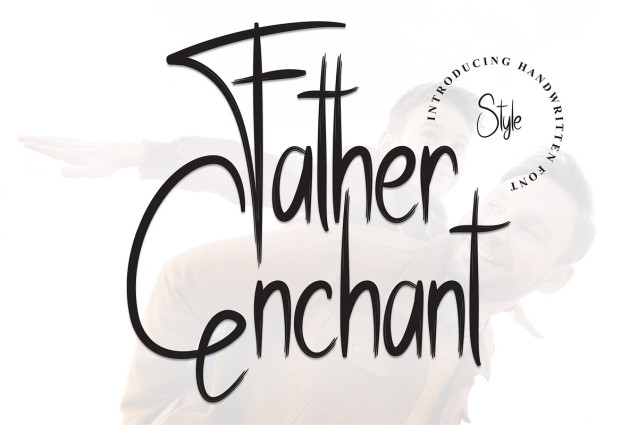 Father Enchant Handwriting Font A popular and professional script font. Modern and elegant, this typeface is made of beautiful creative strokes.This font is perfect for your creative ideas, both formal and informal. It has a modern style with a touch of creative ideas that is very suitable to be applied anywhere that requires creative ideas such as invitation cards,letterheads, website logos, social media, banners, advertisements, brochures, packaging products, leather products, and any product that requires writing.