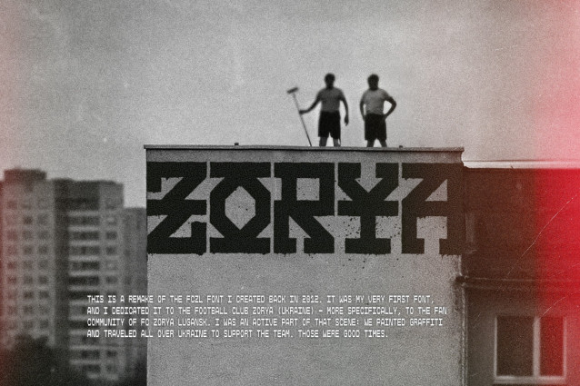 Now, in 2025, it has been more than ten years since the war began in my country, and my city, Lugansk, is occupied by Russia. The football club no longer plays there, and my ultras friends and I had to leave. Some of them have died as combatants. I want to dedicate this font to those guys.