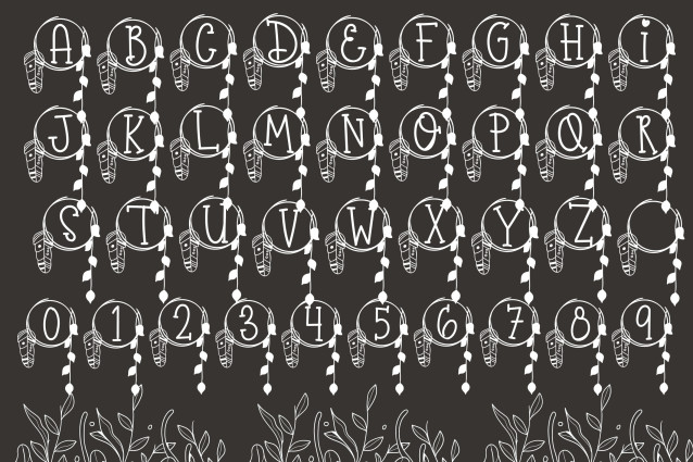 Feather Ring Boho Monogram Font is an enchanting serif monogram font featuring elegant uppercase letters encircled by hand-drawn feather wreaths. With a dreamy, bohemian vibe and organic flow, this font is perfect for wedding branding, personalized gifts, Cricut crafts, and anything that needs a touch of rustic elegance.